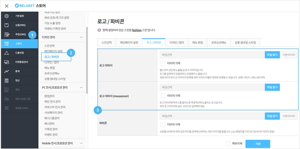 상점 로고와 파비콘 이미지는 따로 설정이 가능하며 각각의 위치와 용도에 맞게 설정해주세요.